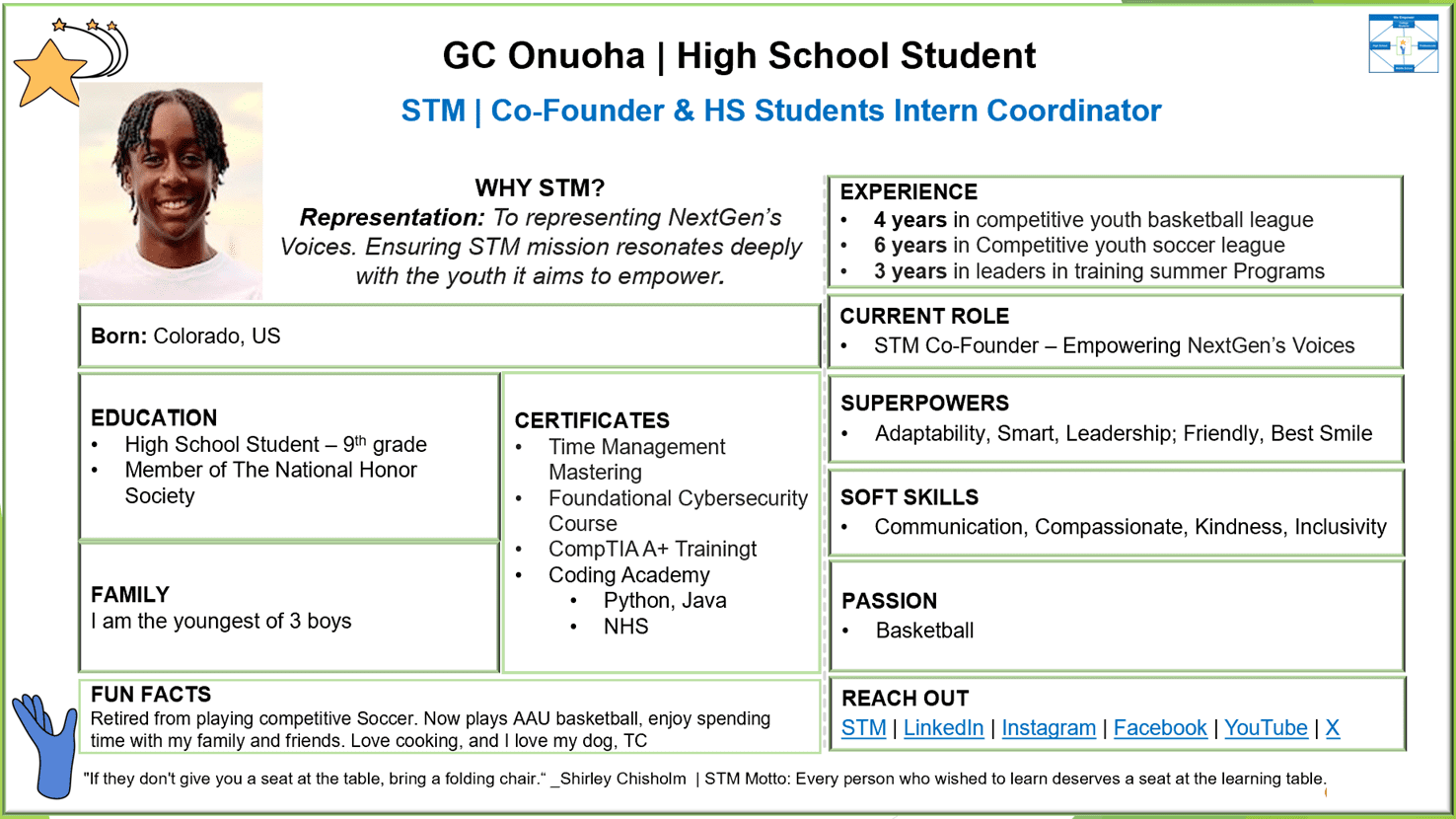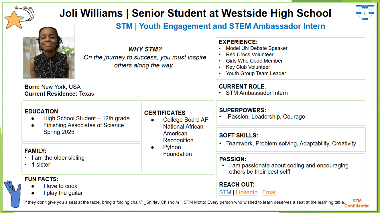“Representing NextGen’s Voices. Ensuring STM mission resonates deeply with the youth it aims to empower.“